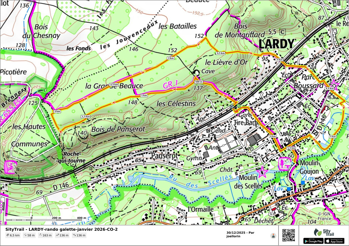 - Départ de la rando: parking de la gare de Lardy.