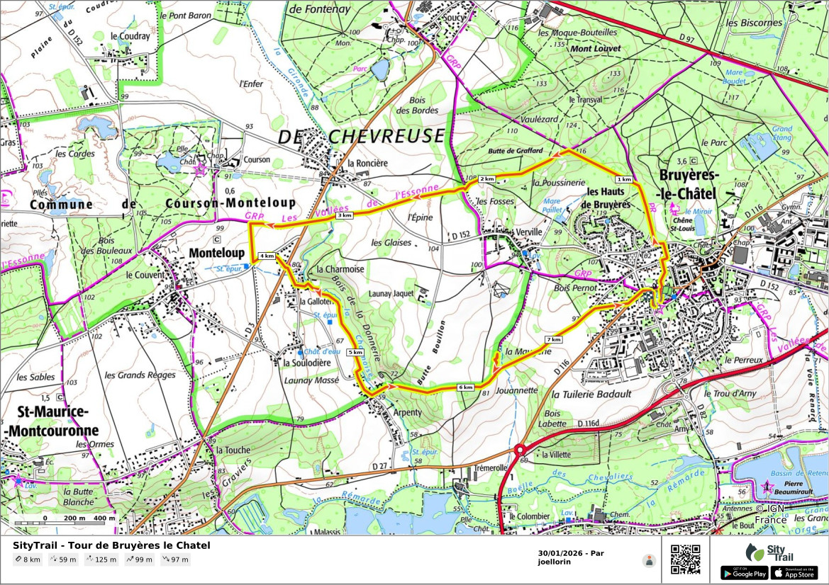 - Départ de la rando: parking de l’église de Bruyères le Chatel