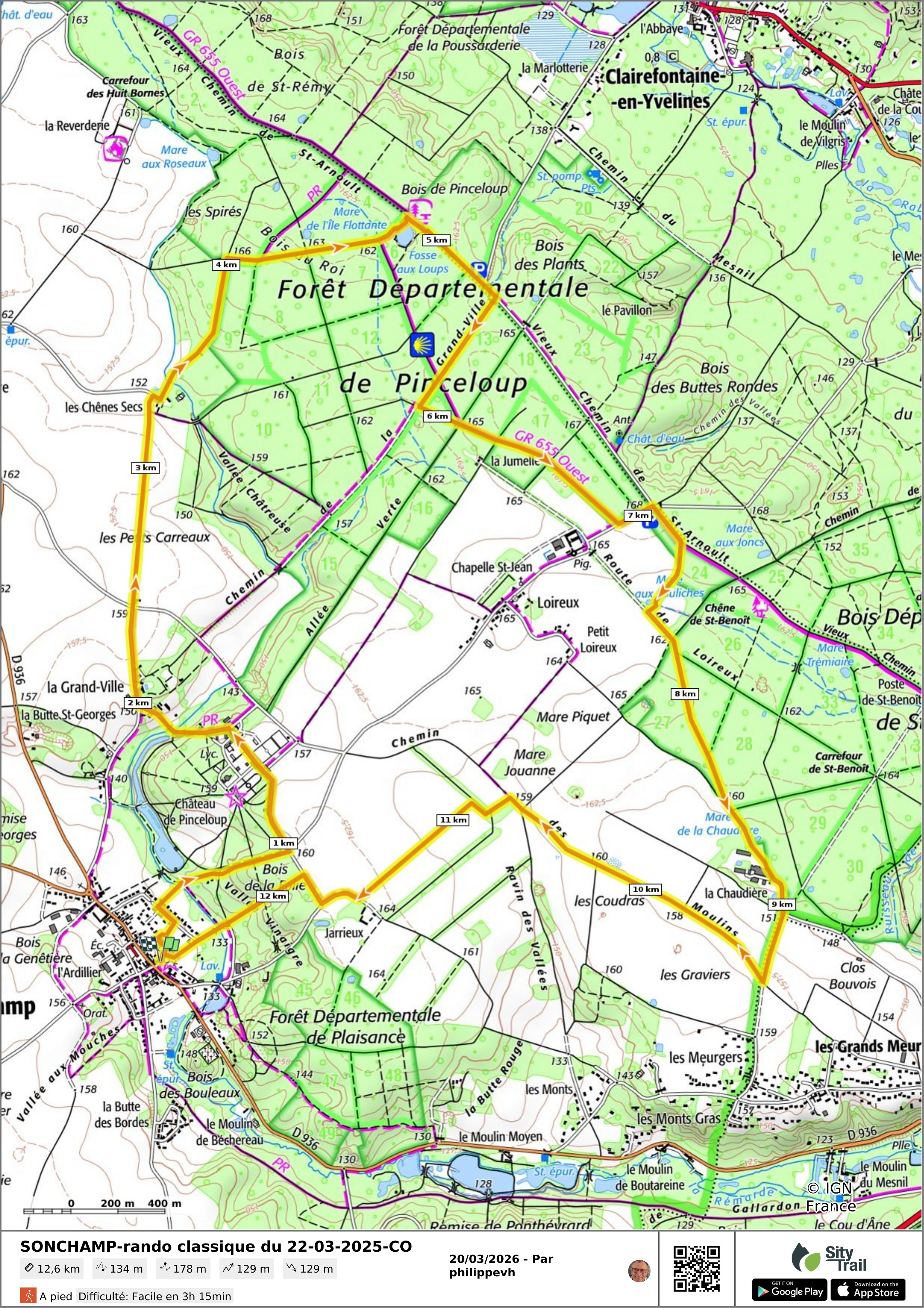 - Départ de la rando: devant l’église de Sonchamp (parking église, mairie et écoles)
